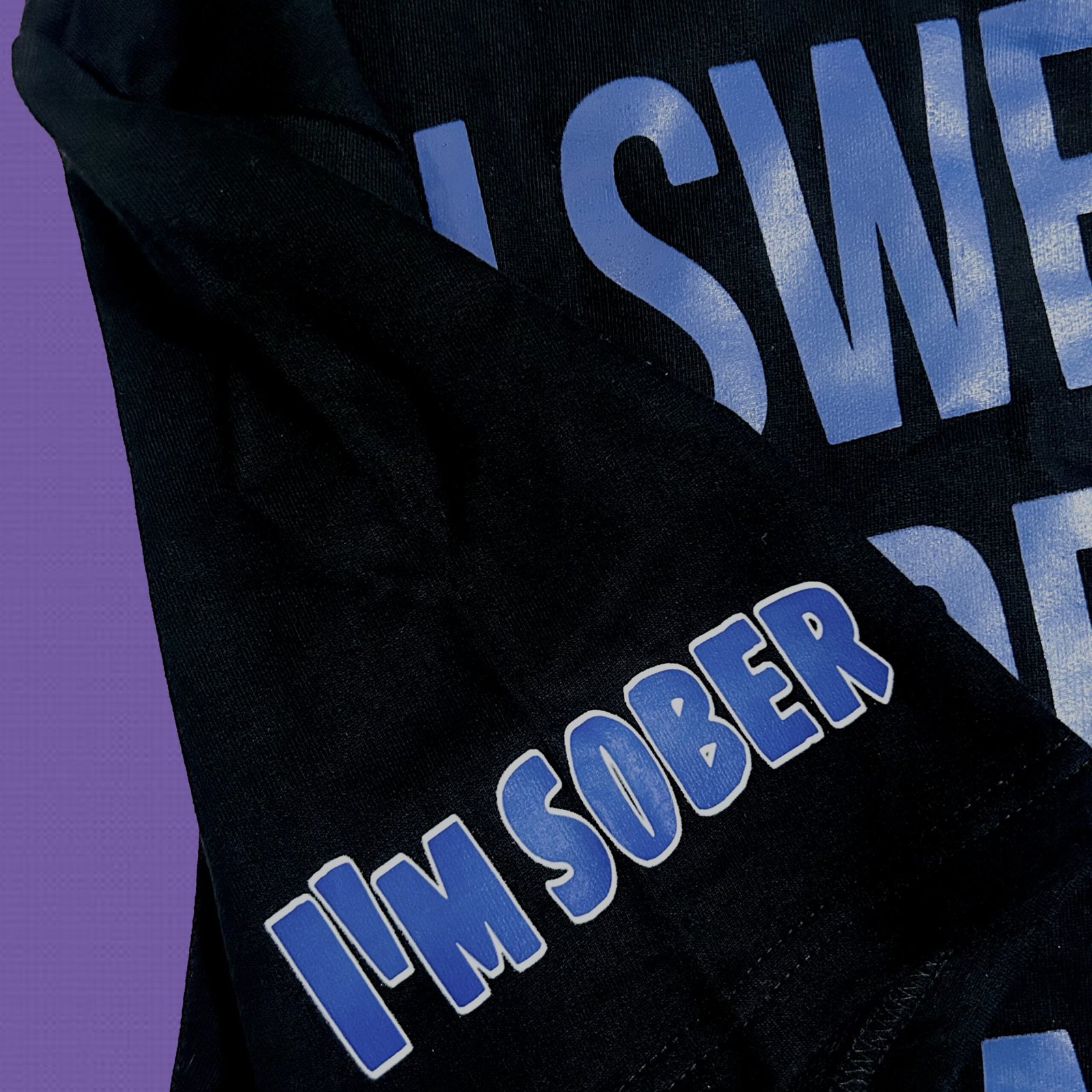 A humorous black tee with a bold purple “I swear to drunk I am not God” statement, ideal for a playful and edgy statement.