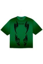 This green gradient T-shirt features a bold tribal design on the front, paired with an inspiring “Not all who wander are lost” message on the back, perfect for a stylish, adventurous vibe.